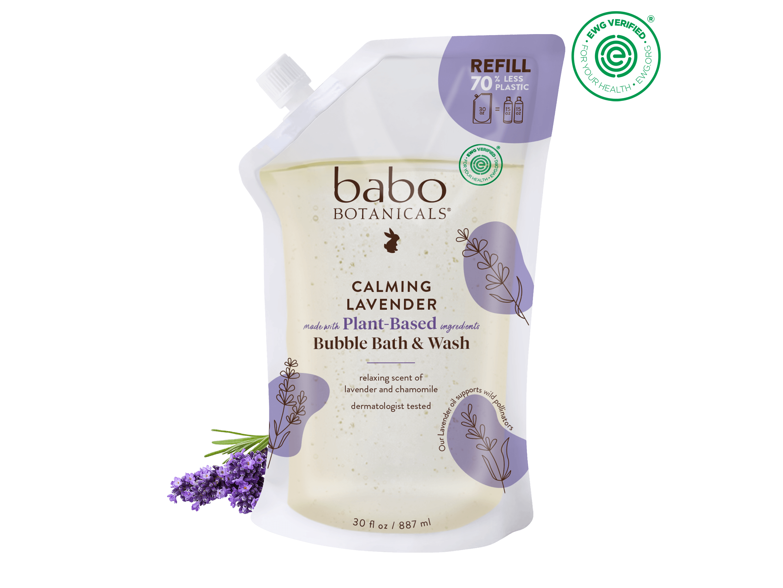 - Gentle 2-in-1 lavender bubble bath & wash for all skin types