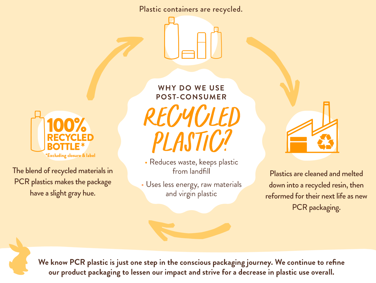 As part of our ongoing efforts to improve the sustainability of our packaging, we have begun carrying our Bubble Bath collection in 100% post-consumer recycled plastic bottles. The previously clear plastic bottle now appears slightly gray due to the inclusion of recycled plastic material, which adds a grey hue. If you are a long-time user of this product, you’ll notice the bottle itself looks more gray, but rest assured the Bubble Bath inside is the same product you love!