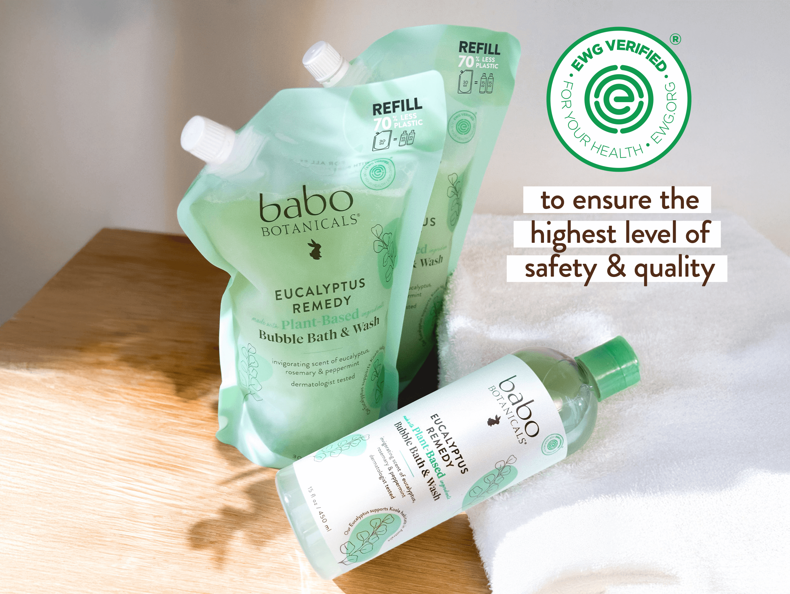 EWG Verified® products are certified as meeting the Environmental Working Group’s strict standard for ingredient safety, transparency and product efficacy. The EWG Verified® program is a registered trademark licensing program that follows a published set of health standards developed by EWG’s research team. When using an EWG Verified bubble bath, you can relax and enjoy the experience knowing you are using a safe and effective product tested and reviewed by scientists and health experts!