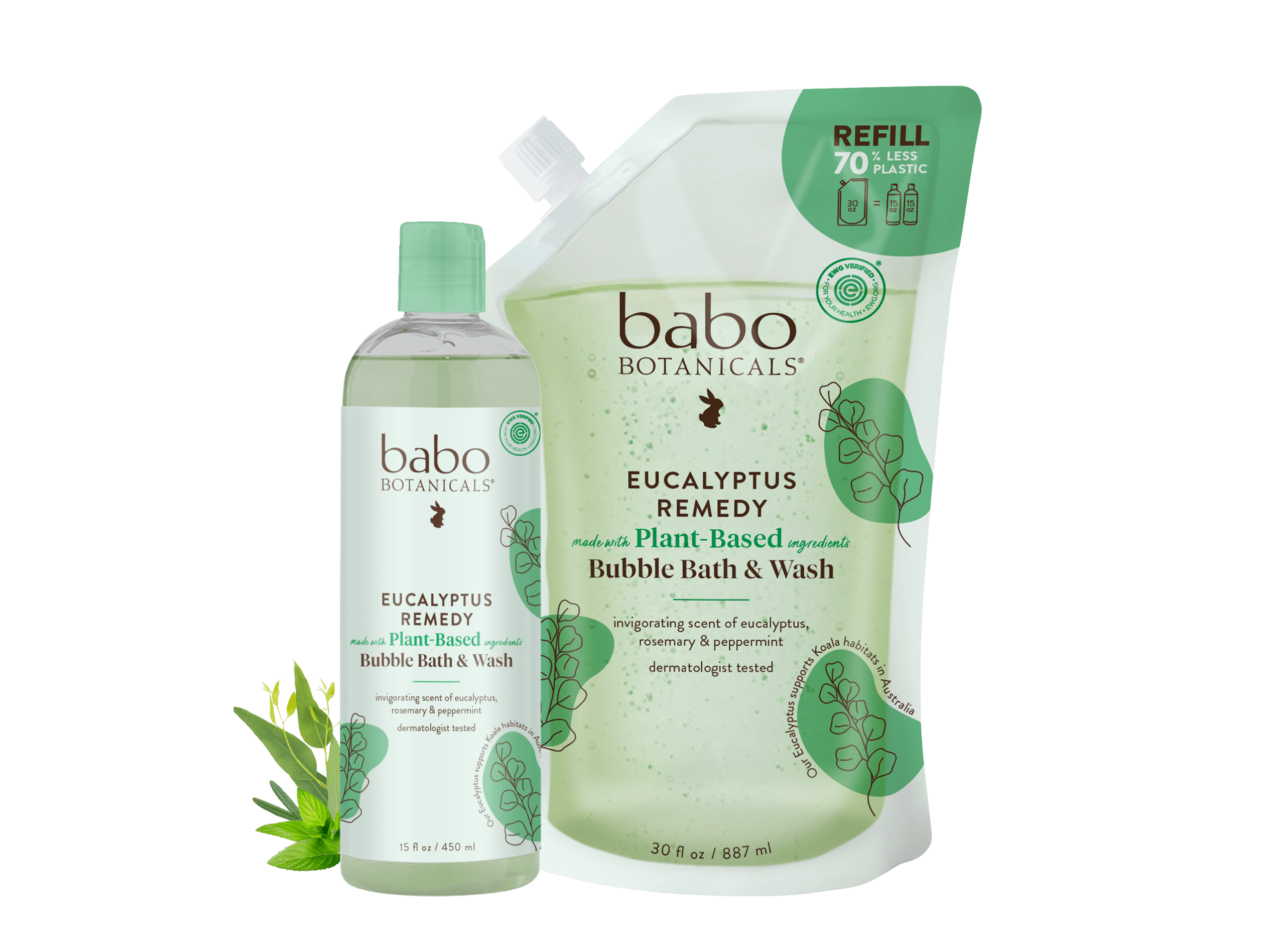 - Gentle 2-in-1 eucalyptus bubble bath & wash